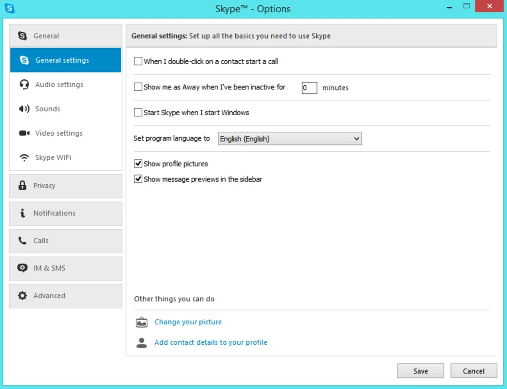 The clean and organized layout is quickly familiar, even for new users. Adjusting emojis in your settings, making phone calls, adding Skype credits for calls, and testing of mic, speakers, and cameras is also possible within the Options menu.